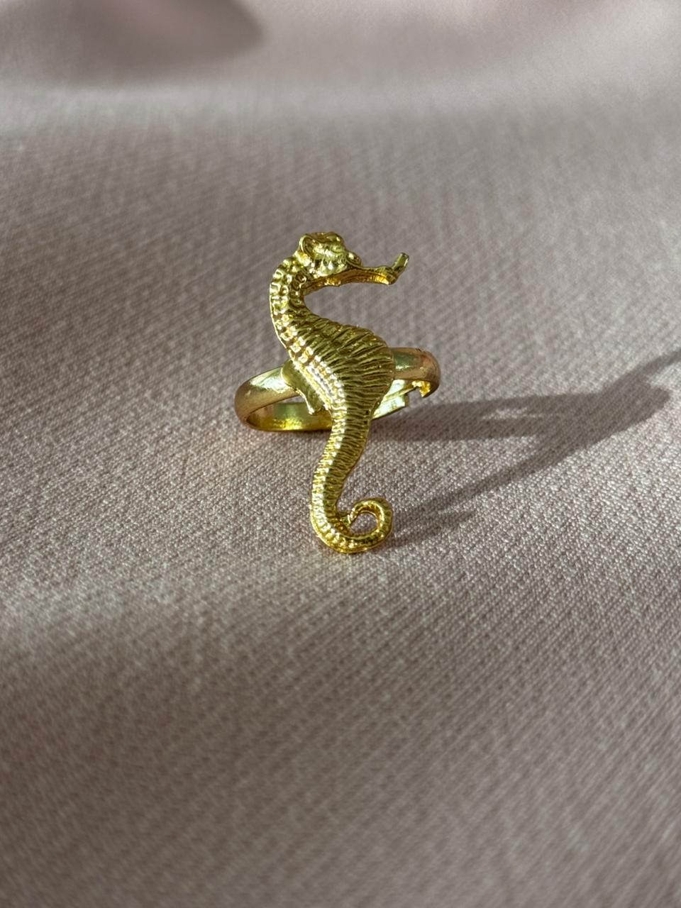 Anillo ajustable de caballito de mar, dorado