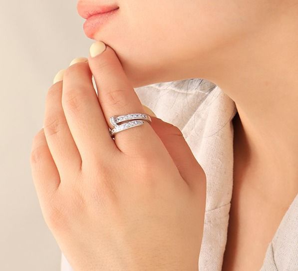 Anillo ajustable de clavo con brillo, plateado cantidad