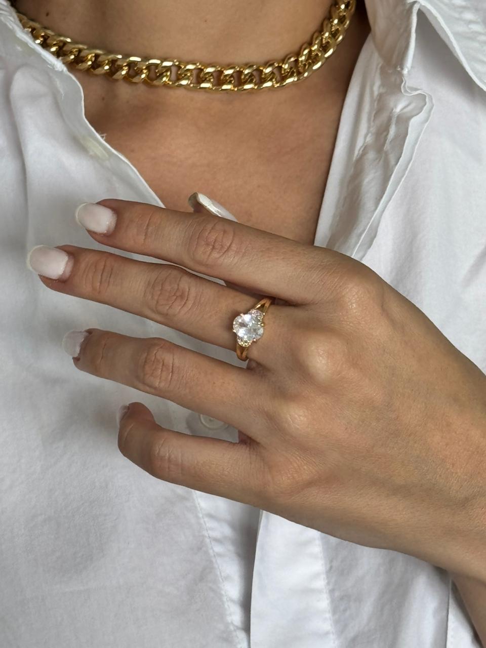 Anillo ajustable de piedra ovalada con brillo, dorado