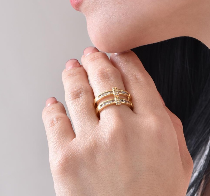 Anillo ajustable doble línea con brillo y cristales quantity
