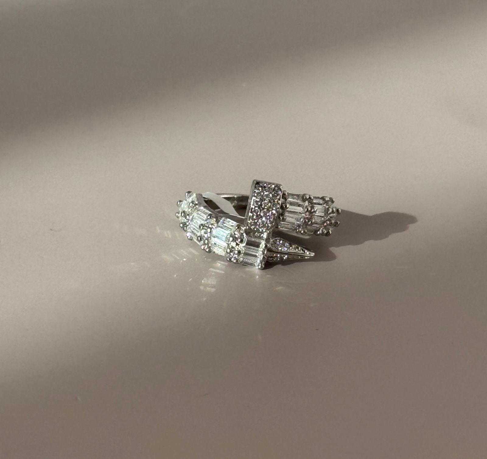 Anillo ajustable maxi con cristales de clavo plateado quantity