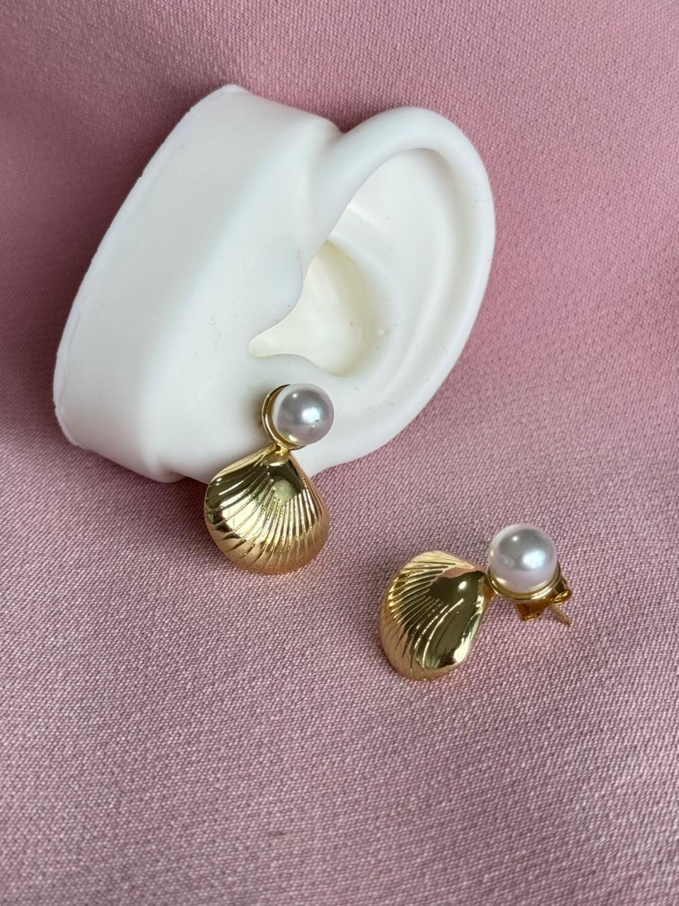 Aretes Topos de perla con dije de concha