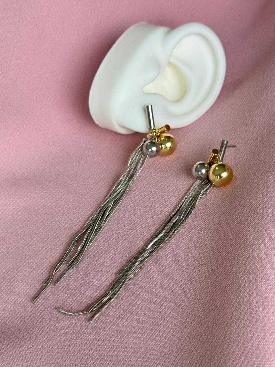 Aretes Topos maxi con balines y cadenas colgantes cantidad