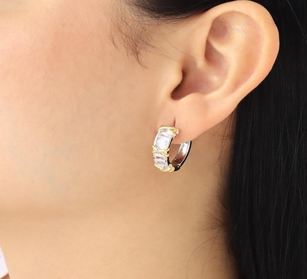 Ear cuff plateado con piedras y brillo