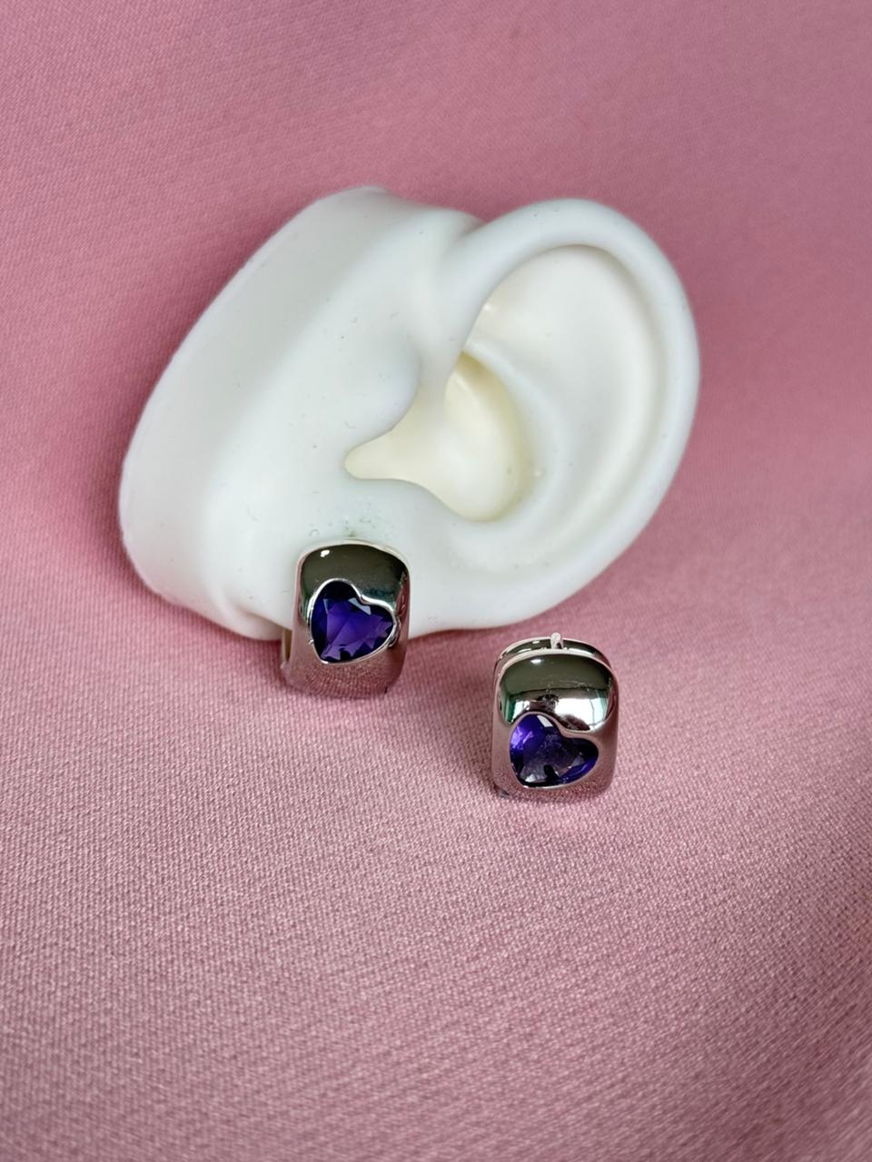 Argollas minis de corazón incrustado con plateado liso