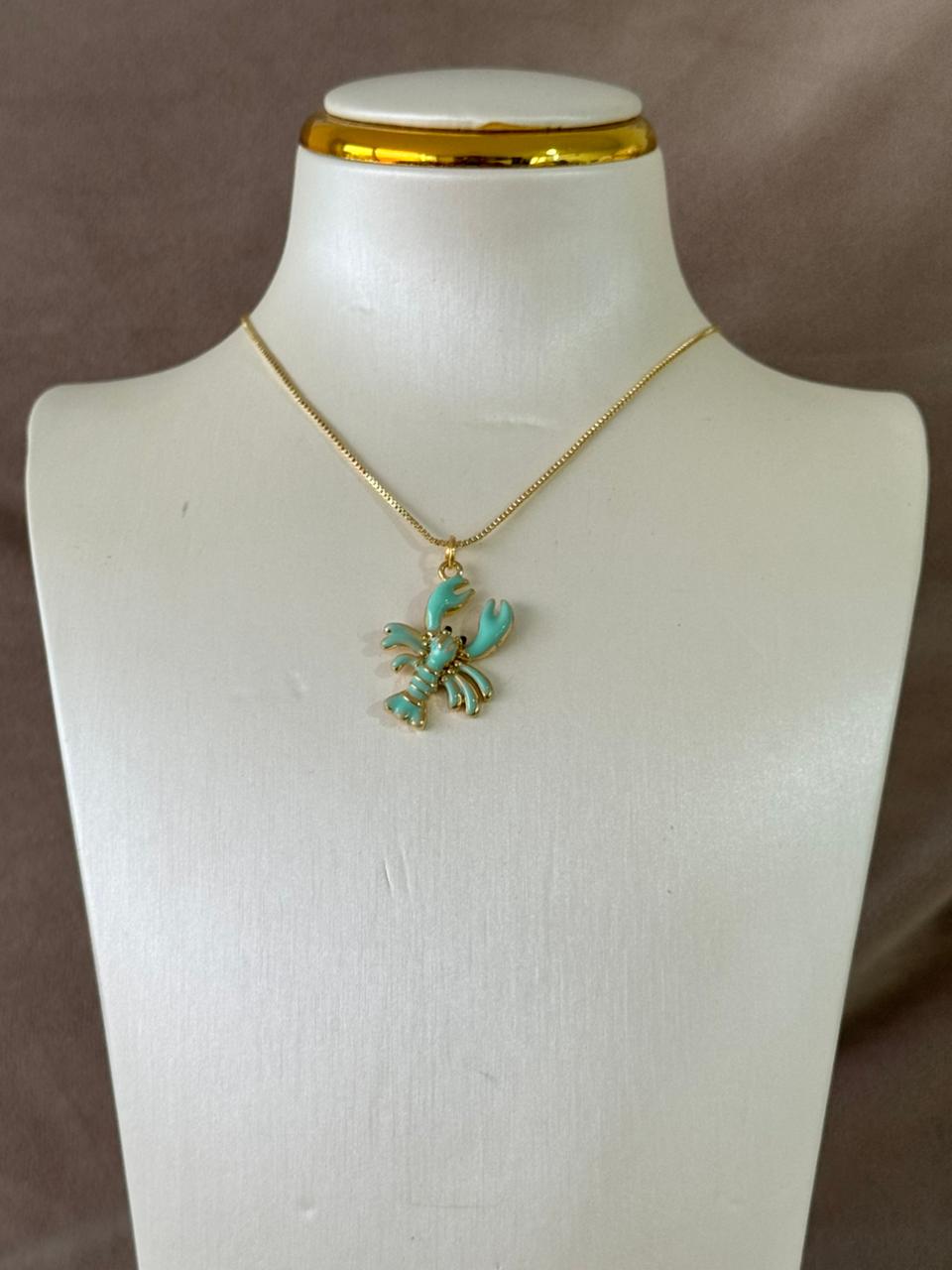 Collar ajustable con dije de langosta de verde agua cantidad