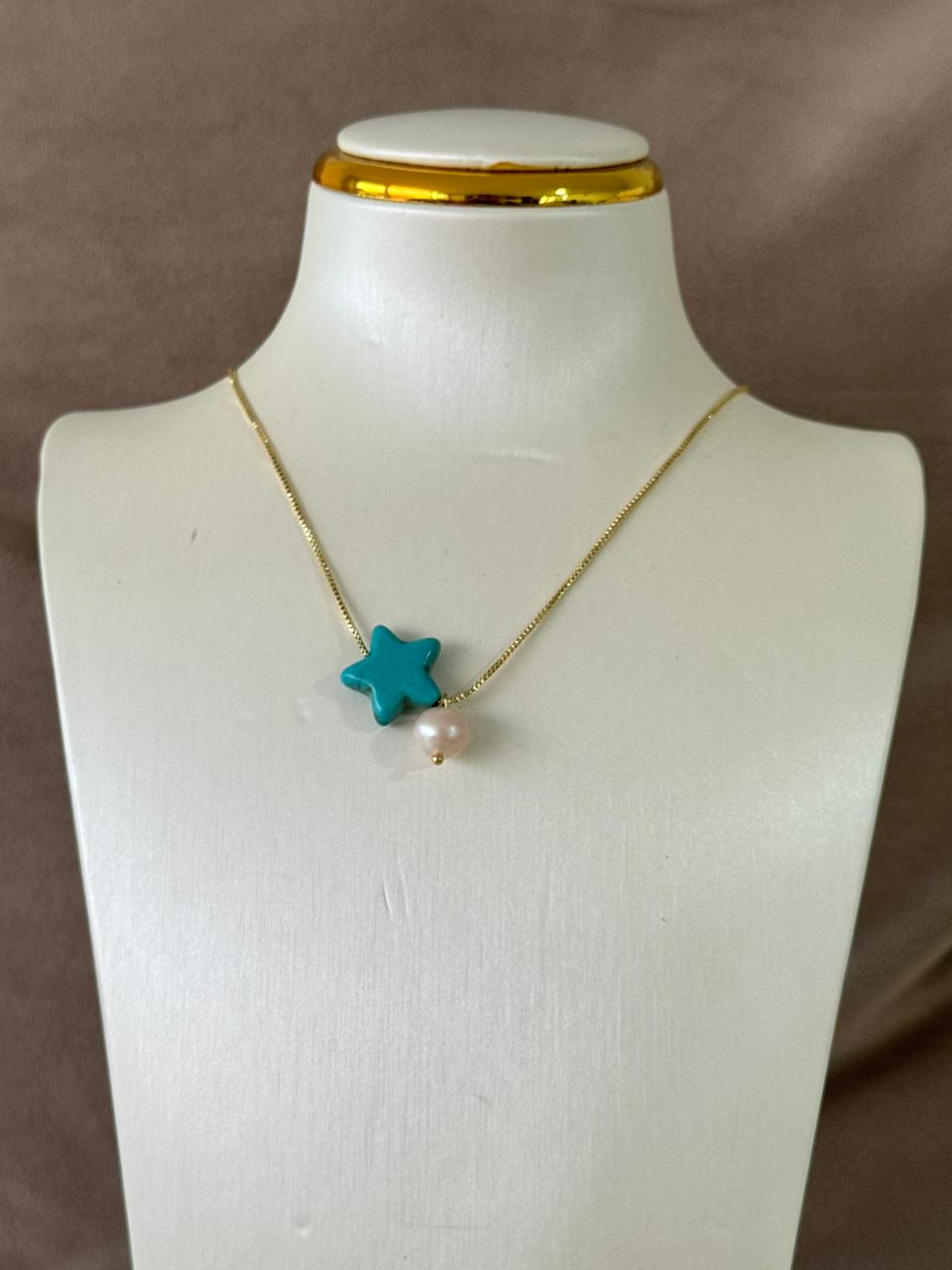 Collar ajustable con dije de perla con una estrella turquesa
