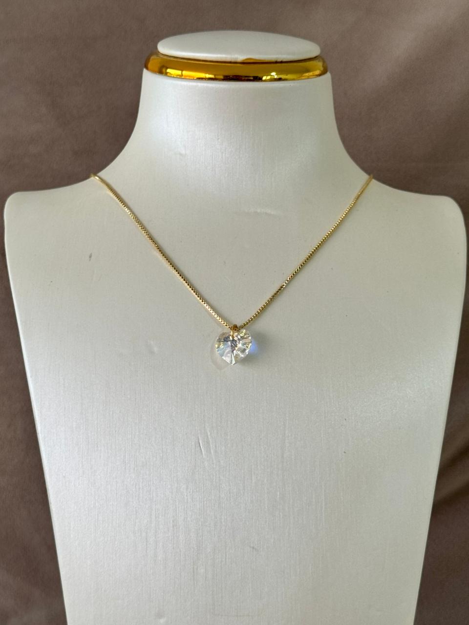 Collar ajustable con dije de piedra de corazón