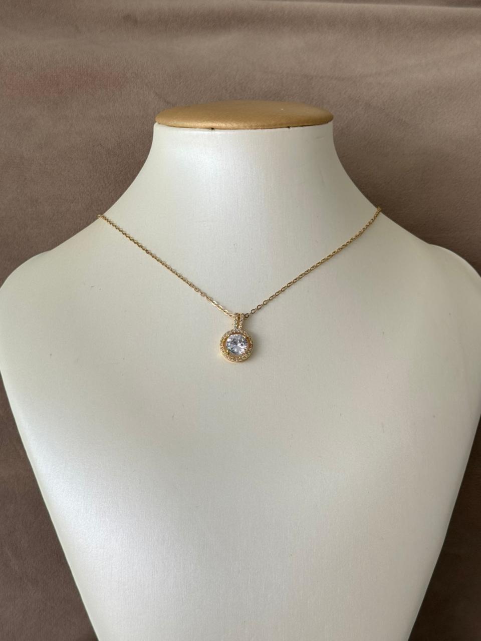Collar, Gargantilla con dije de redondo con piedra brillo