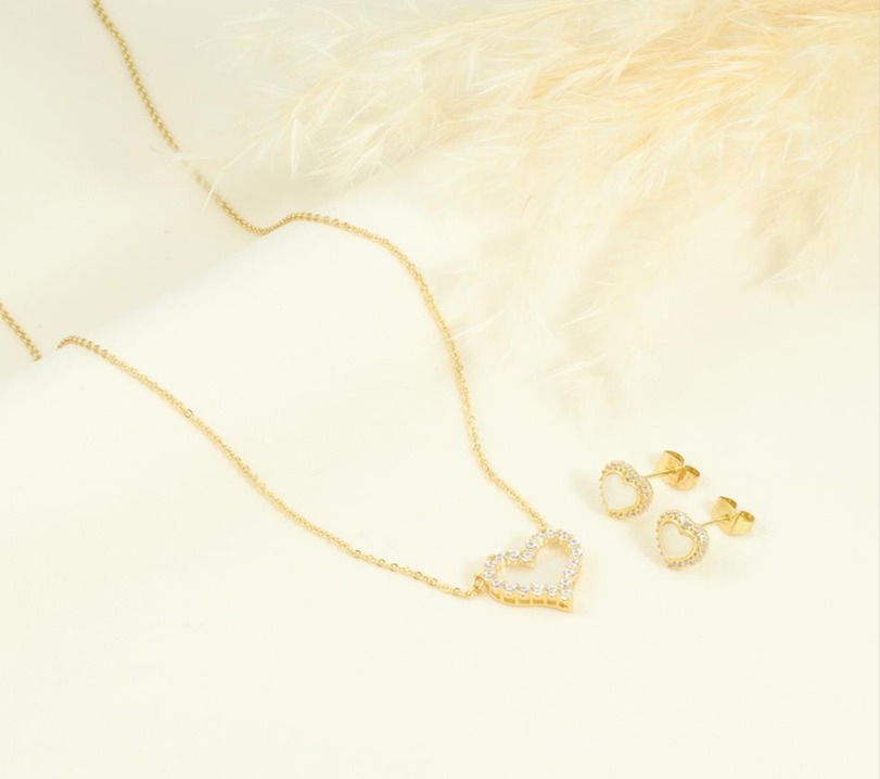 juego de collar con aretes de corazon de nacar con brillo quantity