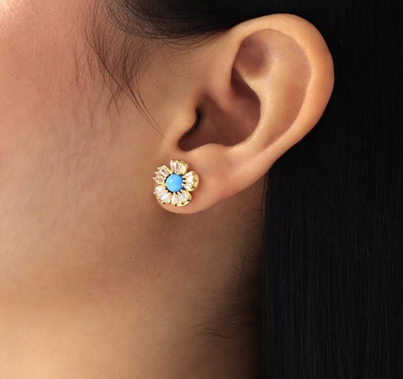 Ear cuff plata flor con brillo